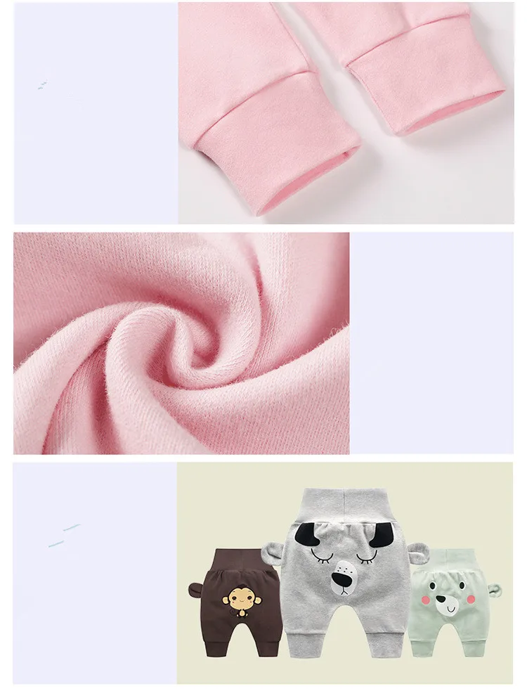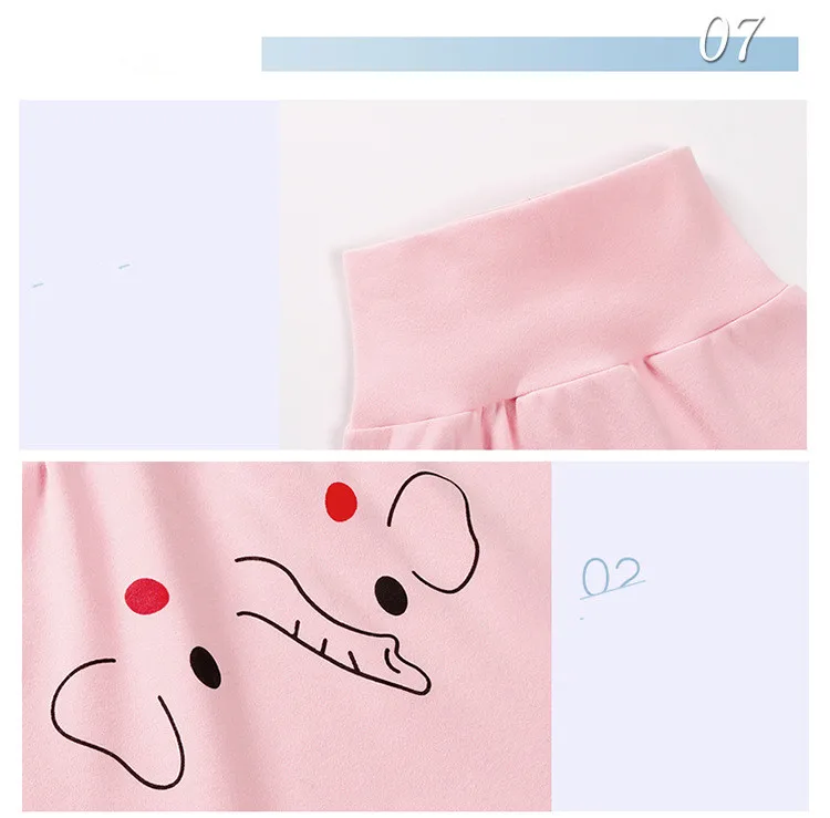 Calças fofas para bebês meninos e meninas desenho animado cintura alta proteção barriga crianças criança primavera outono calças para recém-nascidos