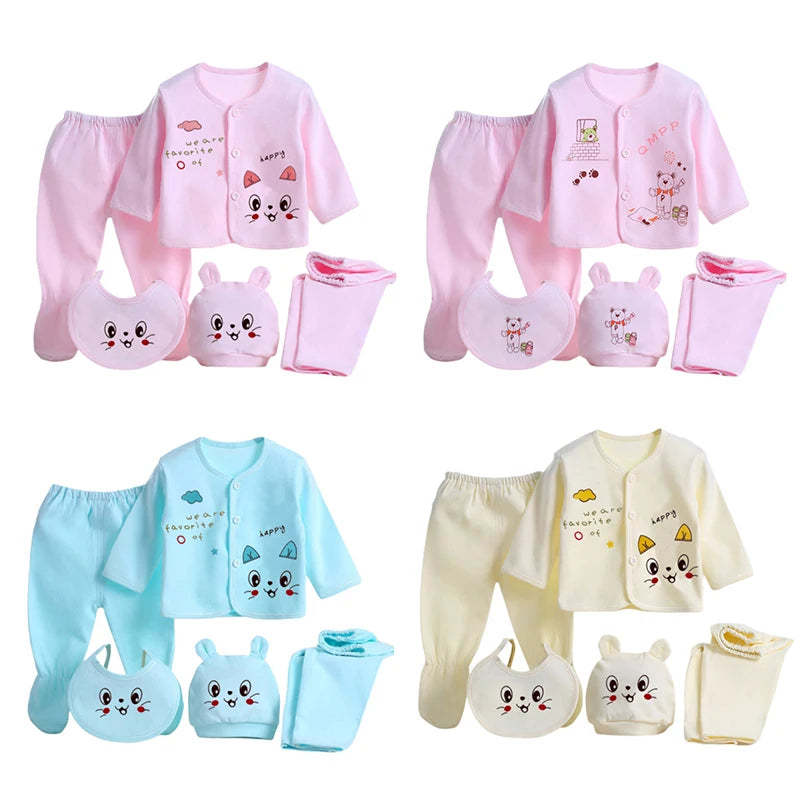 5pcs/Set Newborn Baby Clothing Set Cartoon Infant Boys Girls Clothes Suits Cotton Soft Cute Cat Newborn Outfit Baby Sets