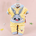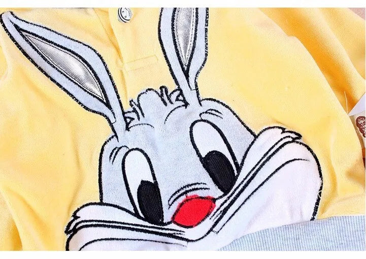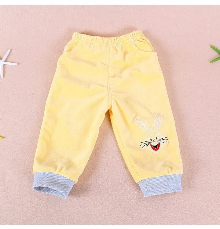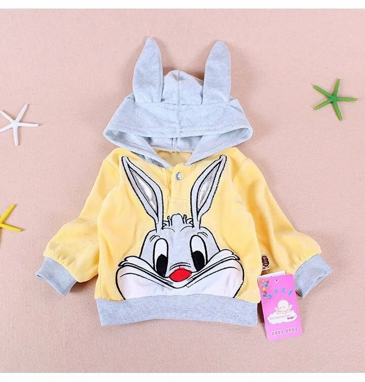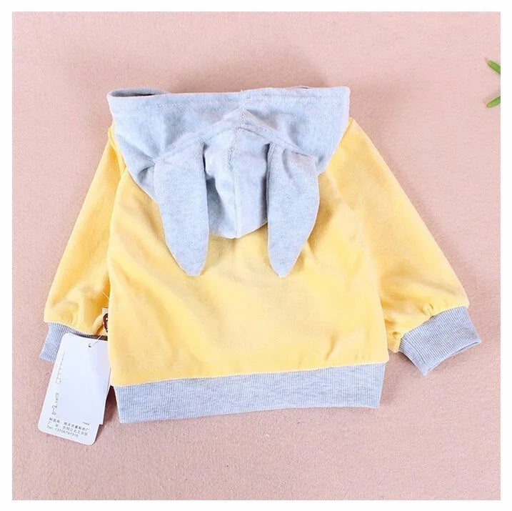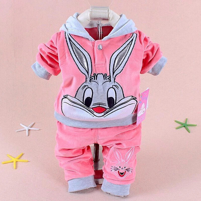 Novos conjuntos de roupas de veludo para recém-nascidos de outono para meninos e meninas, casaco com capuz e calças de desenho animado, 2 peças, roupas infantis para bebês, traje quente